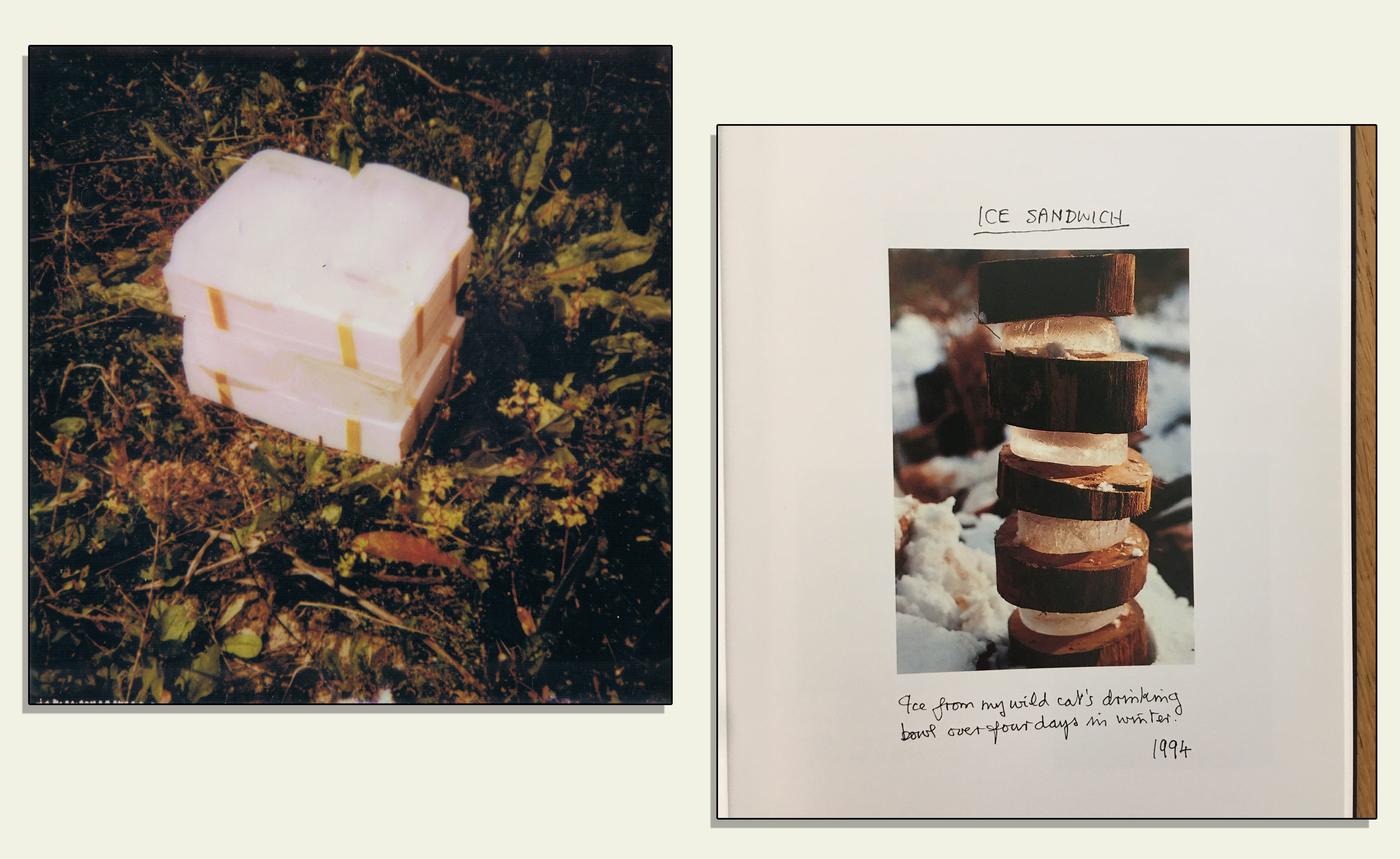 The record’s second track is called ‘Ice Sandwich’. It’s named after a Peter Hutchinson’s piece of the same name, from 1994. Peter collected ice from his wild cat’s drinking bowl for four days and stacked it with cut up lumber to make a beautiful mast.